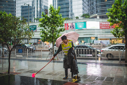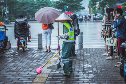 伍美欣《雨后的环卫工》