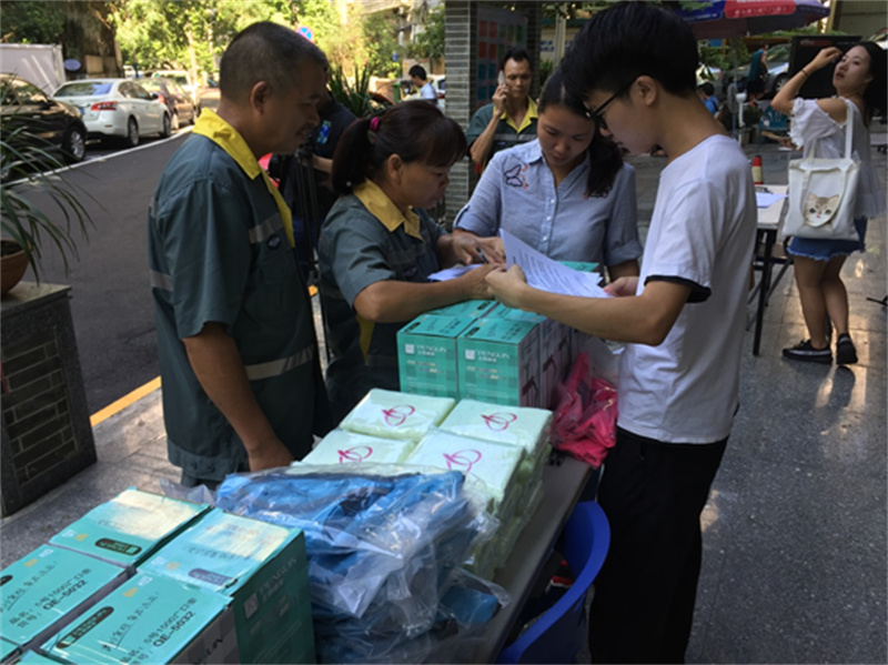 上午9点,德赛西威关爱“黄玫瑰”活动志愿者们开始沿街为环卫工派发定制的爱心腰包、保温杯和毛巾等爱心物品,将115份爱心物资赠送到在一线工作的环卫工手上,道一声感谢,为辛勤工作的黄玫瑰们送去一份慰问。虽然“爱心包”并不算很贵重,却是环卫工最实用的物品,也饱含了德赛西威一份份沉甸甸的心意。