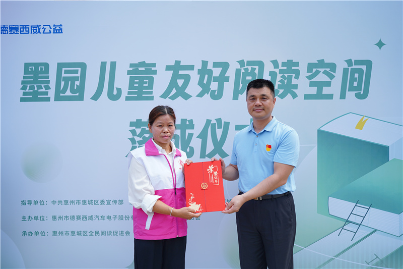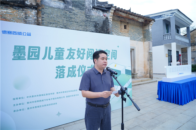 最美人间四月天,而四月中最美的风景,是孩子们在家门口的图书室,捧起书阅读时的场景。4月20日上午,由德赛西威捐赠的墨园儿童友好阅读空间正式落成。该空间位于惠城区横沥镇墨园村老书室,落成仪式在老书室前的广场举行。中共惠城区委宣传部、区新闻出版局局长、惠城区委宣传部二级主任科员胡灿明、惠城区妇女联合会副主席邓历历、横沥镇党委委员匡贇、墨园村党总支部书记、主任刘红兰、区全民阅读促进会代表和公司代表出席活动。