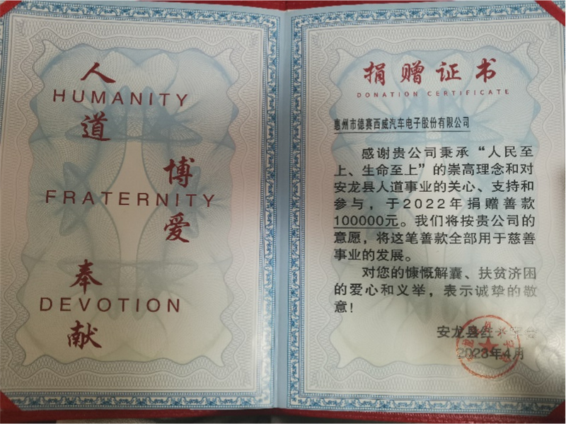 因惠州和黔西南州作为东西部扶贫协作和对口支援地区,德赛西威参与仲恺区发起的“仲恺企业慈善安龙行”帮扶项目,定向向黔西南州安龙县捐赠10万元,用于助学帮扶。